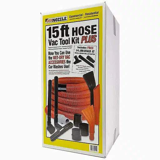 Mr. Nozzles Vac Tool Kit Plus has a durable 15-foot hose with a patented I-beam design with over 20 years of field tested endurance in the carwash ...